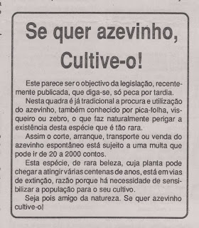 Diz o DL 423/89 de 4 de Dezembro que ”o azevinho tem sido