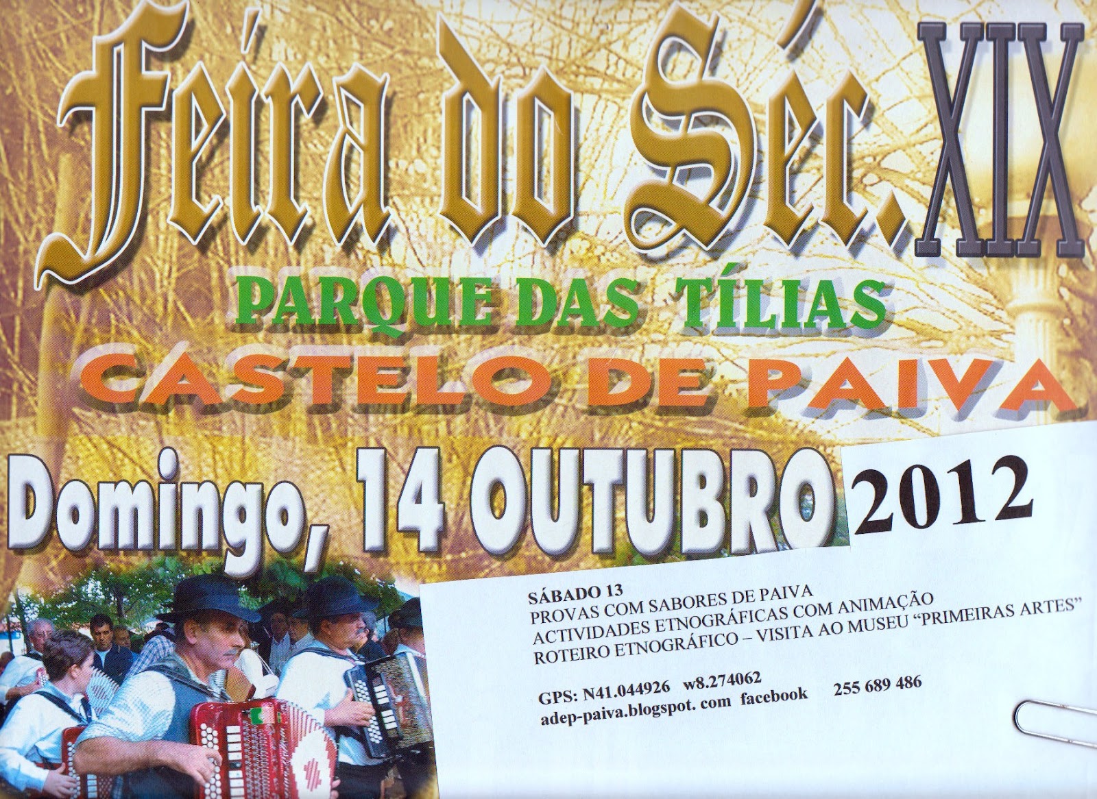No dia de abertura da Feira do Vinho Verde e do Lavrador, é a oportunidade para divulgar a próxima edição da FEIRA DO SÉC. XIX - no Parque das Tílias, à Frutuária, Castelo de Paiva. 2.ª Domingo de Outubro.